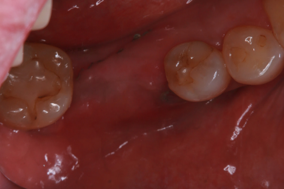 親抜歯後、歯ぐきは治癒しました。しかし、インプラント治療のためには骨が不足していました。