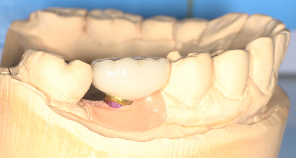 - 支台の上に人工の歯を装着します。